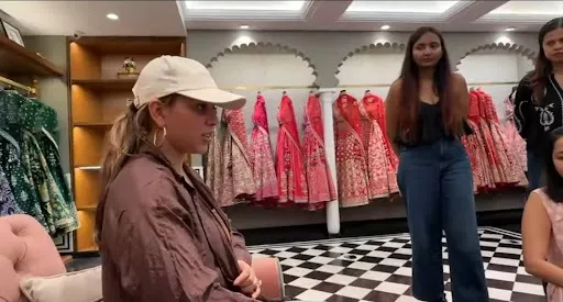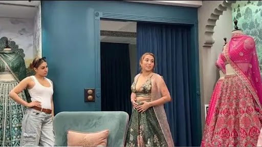 Aaliyah and her friend, Sakshi Shivdesani, went for the trial session and were seen discussing what kind of outfits the former wanted for her wedding festivities. Aaliyah even tried on a green-hued lehenga as a reference outfit. The piece featured a flowy lehenga with a deep ‘V’ cut blouse, which was all put together with a sheer embroidered jacket.
