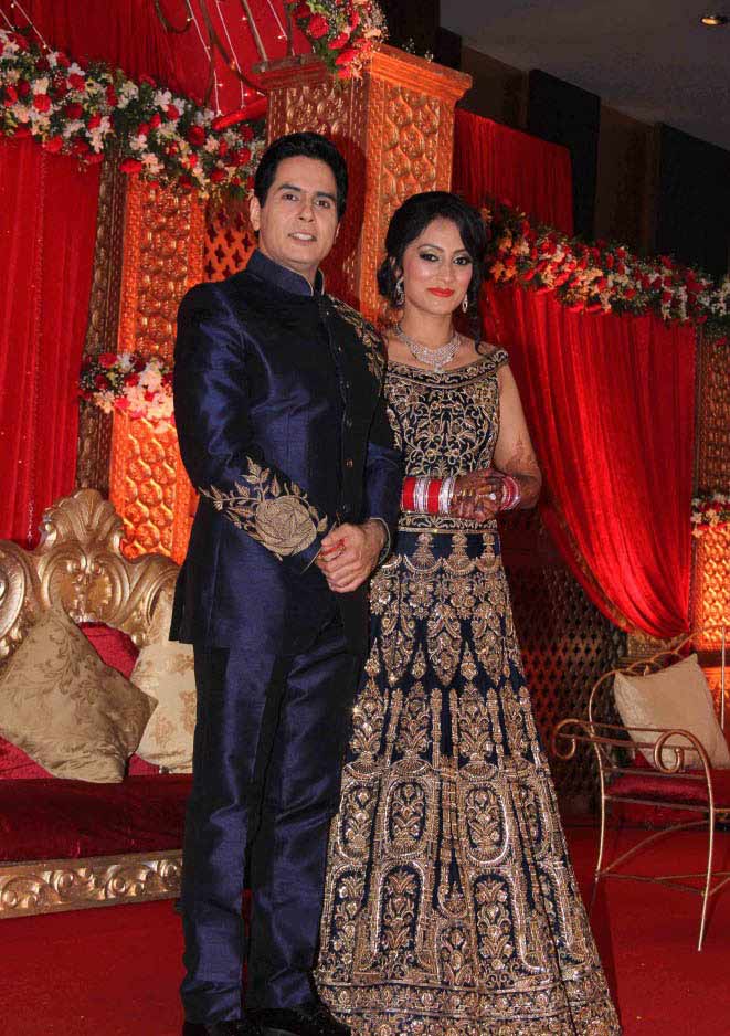 After the wedding, the couple had an amazing reception as well where Aman wore a royal blue bandhgala. Vandana, on the other hand, sported a heavy off-shoulder lehenga teamed up with elegant diamond jewellery. Here we have a few pictures from the grandeur event, scroll on!