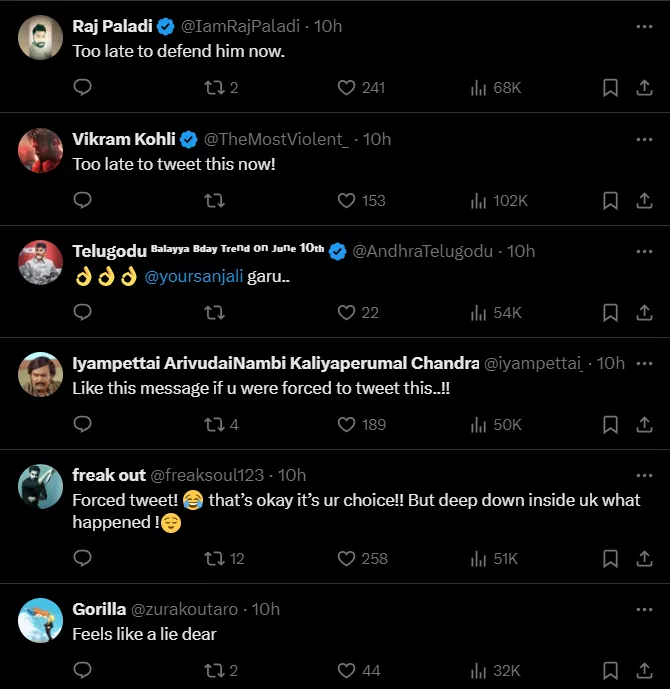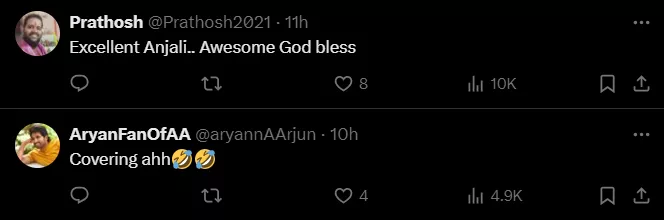 However, this post did not go down well with the netizens. They took to the comment section of the X (formerly Twitter) post and penned down their thoughts on Anjali’s efforts to defend the Telegu actor. One user said, “Too late to defend him now.” Another one wrote, “Forced tweet! that’s okay it’s ur choice!! But deep down inside you know what happened!” Meanwhile, a third netizen commented, “I understand you can't go against the system...because the system is under control, You deserve better... And the Lord will bless you 1 day wait for the time.”