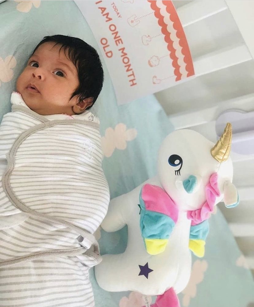Barun and Pashmeen usually don’t post much about their little munchkin, thus their fan pages come in handy to find Sifat’s pictures. On one of Barun’s fan page, we found a picture of his daughter, Sifat from the time when she was just one month old. The baby girl can be seen wrapped in a swaddle, lying on her bed with her unicorn by her side in her crib. We also spotted ‘I am one month old’ placard in her crib.