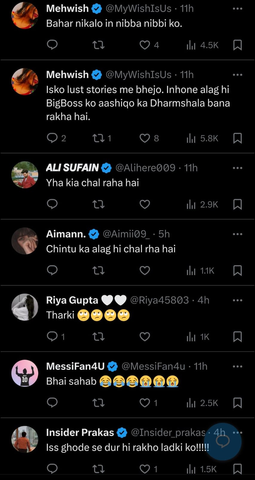 As soon as the video was uploaded on social media, netizens started brutally trolling Samarth for his actions towards the 19-year-old actress, Isha. One user wrote, "Isko lust stories me bhejo. Inhone alag hi BigBoss ko aashiqo ka Dharmshala bana rakha hai.” Another netizen penned, "Chintu dekh rha hai ke phir itni achi ladki mile na mile... camera gya tel lene."
