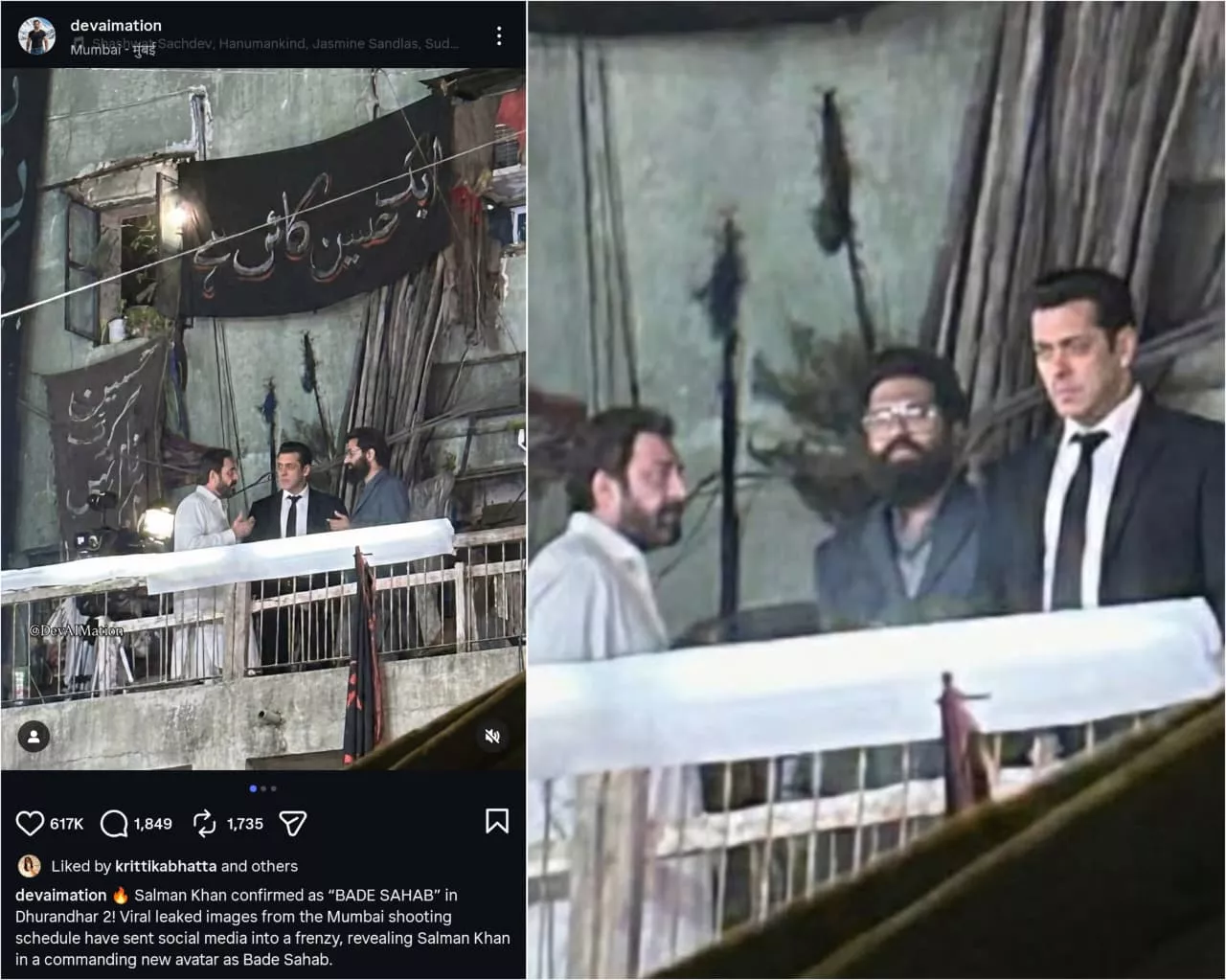 A post claiming Tiger 3 fame, Salman Khan is playing 'Bade Sahab' in Dhurandhar: The Revenge has been circulating on social media platforms like X (formerly Twitter). The post contains some viral images of Salman decked up in a suit on the movie's set, alongside Arjun Rampal (who plays ISI's 'Major Iqbal') and Sanjay Dutt (who plays 'SP Aslam Chaudhary'). Although the shots appear to be from the sets of Dhurandhar 2, taken from afar, they were actually created by an AI artist as fan concept art.