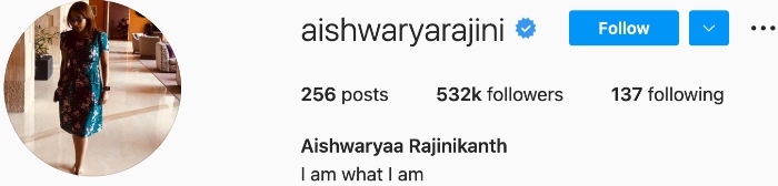 As per reports, Aishwaryaa was using Dhanush's name until March 23, 2022, but she changed it on March 24, 2022. Currently, we can see her father's name along with her name on her Instagram bio. For the unversed, though the couple broke millions of hearts with the news of their separation, they have maintained a dignified silence on the same and had requested their fans and media to understand their decision.