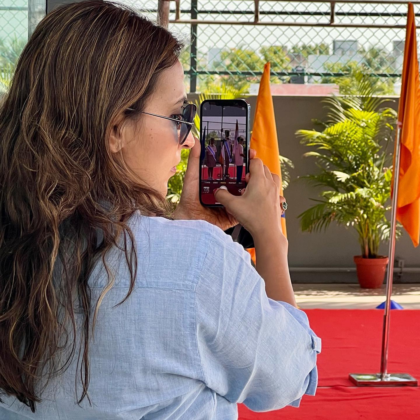 On August 22, 2022, Aishwaryaa Rajinikanth shared a picture from her sons, Yatra and Linga's school function on her Instagram handle. In the photo, the doting mommy was seen clicking a picture of her elder son, Yatra while he was taking oath as Sports captain. Sharing it, she captioned the photo as: