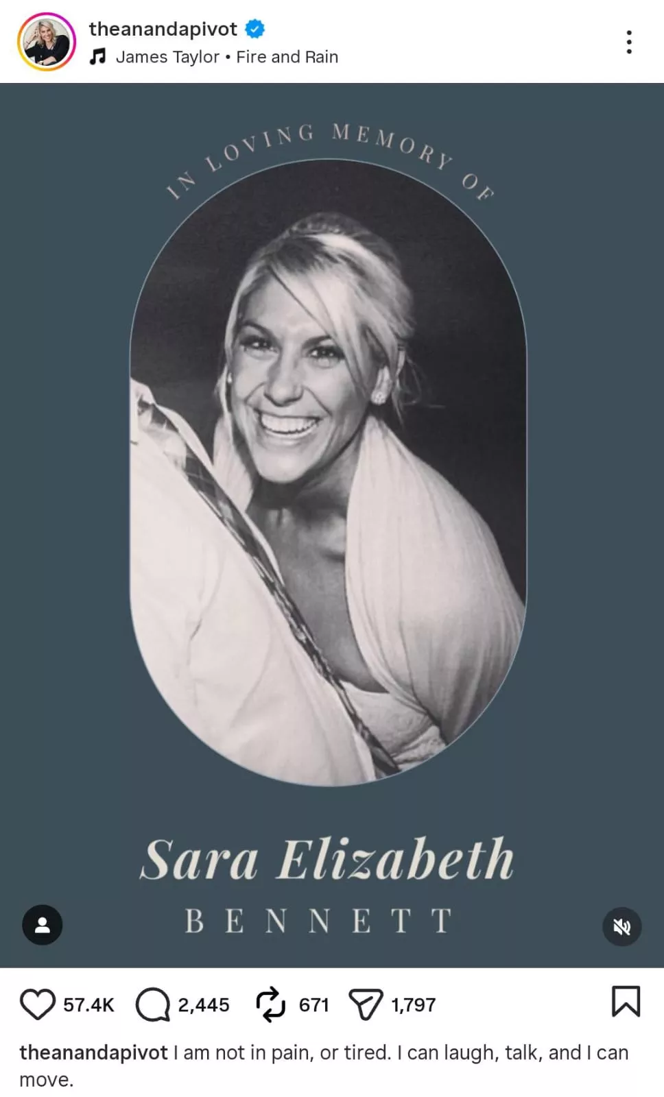 Influencer, Sara Bennett shared a poignant statement reflecting on her journey with ALS and the final months of her life, on her lifestyle and professional organisation account, @theanandapivot. She stated that she was neither tired nor in pain in her final days of life. She led a normal life, filled with good conversations and laughter. The mom of two, who spent her final years in a wheelchair, shared that she could move around before her demise. Sara Bennett also reflected on the importance of having time to say goodbye even amidst suffering.