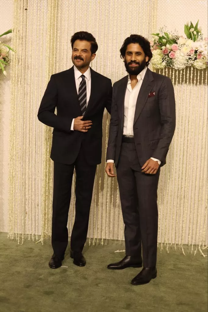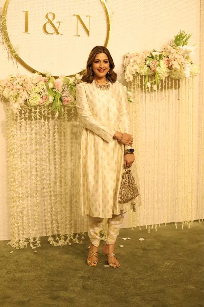 Next, we spotted the ever-so-gorgeous Sonali Bendre who arrived in complete style at Ira and Nupur's wedding reception. Sonali was dressed up in a beige-hued co-ord set teamed with a statement necklace and matching earrings. She kept her look subtle and opted for a wavy open hairstyle. Following her, we spotted handsome hunks, Sachin Tendulkar, Anil Kapoor, Naga Chaitanya and Babil Khan looking dapper in black suits.