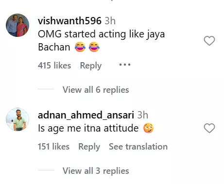 A user even wrote, "Only because she is insecure about her looks, this is very sad. She freaks out every time someone holds a camera in front of her. They are only nice when fully decked up from head to toe. Disappointing from Rekha." There were others who wrote, "Yeh Sindoor kiske naam ka lagati Hai?" While one wrote, "Jaya Bachchan 2.0."