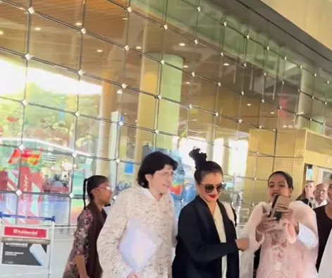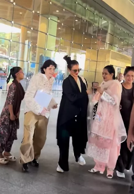 A video has gone viral showing Rekha exiting the airport with her manager. She had worn a black tracks, jacket with a white top. She had tied a high bun, wore sunglasses, and put her iconic sindoor. The actress was compared to Jaya Bachchan by netizens as she has a cold relationship with the paps and is known for fighting with them. As seen in the video, a lady wearing a pink-hued salwaar kameez came towards Rekha for a selfie, and the actress pushed her away.