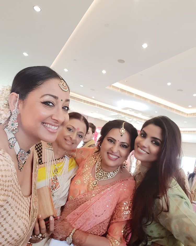 And the following snaps from the wedding, which Shruti has captioned as, “Shaadi mein humari masti.. nilu bhabhi heartiest congratulations for aapki betiyaan Sahiba ki shaadi.. love lots! And oh women what a sweetaholic time.” Take a look: