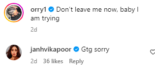 As soon as Orry shared the post, his caption grabbed many eyeballs. Netizens flooded the comment section to react to the stunning pictures and reacted to Orry's note. Meanwhile, actress, Janhvi Kapoor, who was earlier rumoured to be dating Orry, also commented, “Gtg sorry." However, it was Nysa's cheeky comment on Orry's post that caught our attention, as she wrote: