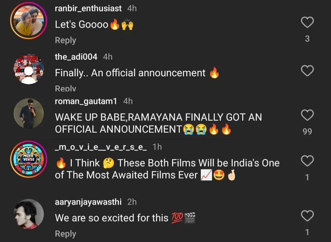 Ramayan is not just a story but an emotion for most Indians. The reverence this epic holds in the hearts of people is unmatched and to get to see a project like this become a reality is beyond expressible. As soon as the poster was posted, well-wishes and enthusiastic comments started flooding the post. Fans showed their excitement and shared their delight about the announcement. One user commented: