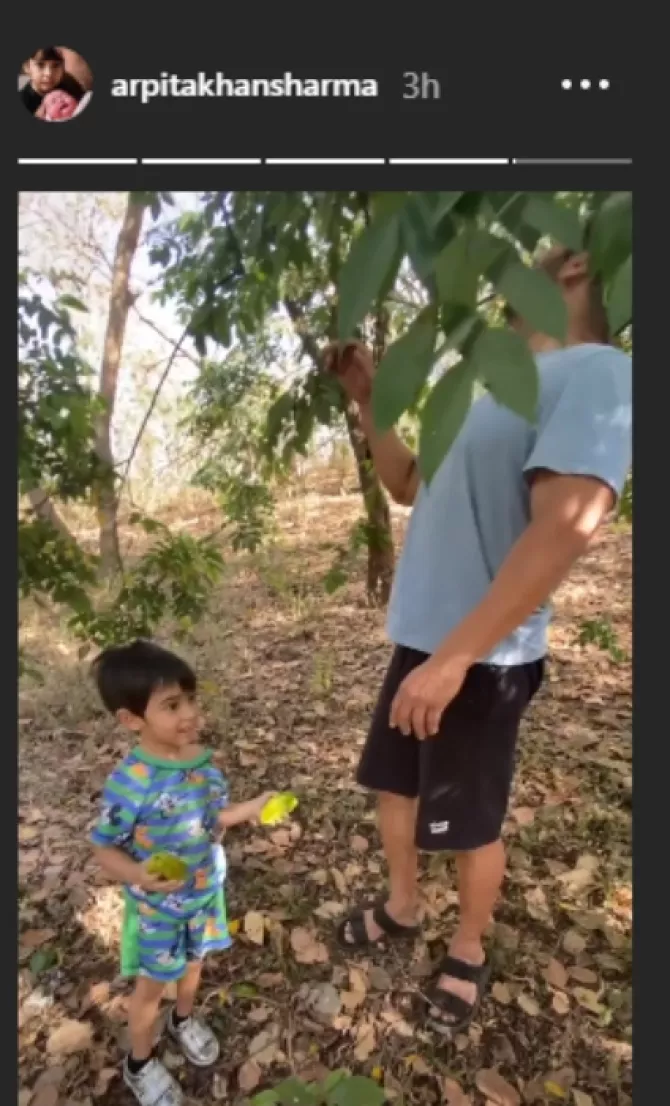 On March 20, 2020, Salman's sister, Arpita Khan Sharma had shared Instagram stories of the actor playing with his nephew, Ahil Sharma. In the stories, we could see Salman enjoying his time with Ahil in the midst of nature in his farms. In another story, we had spotted him taking some fruits from the tree for his baby nephew. Check out the screenshots of the same below: