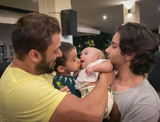 On July 26, 2020, Salman Khan took to is Instagram handle and shared an adorable picture with his nephews, Nirvan and Ahil and niece, Ayat. Salman, who was dressed in a yellow t-shirt looked handsome as he held Ahil and Ayat in his arms. Little Ahil was seen giving a kiss to his baby sister, Ayat. Salman captioned the picture as “Siblings ... @Nirvankhan15.” Take a look:
