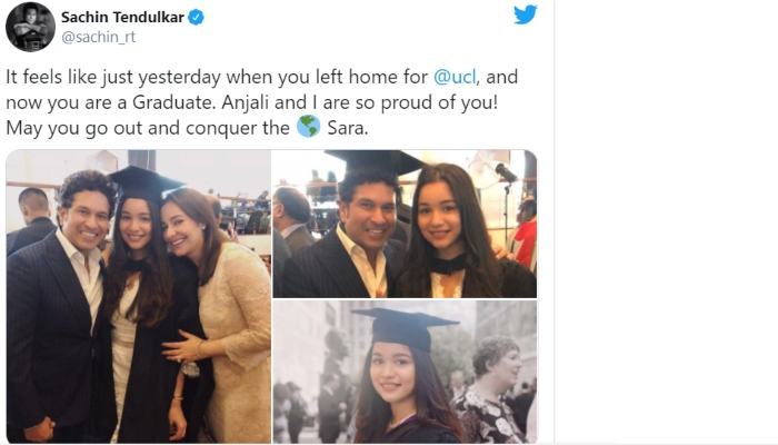 Sara is the most pampered kid in the Tendulkar family. She is a carbon copy of her mother, Anjali Tendulkar and we are sure it makes her a complete momma's girl. She has not only gotten good looks from her mother, but she is also following her footsteps when it comes to her career. She has graduated with a degree in medicine from the University College of London. We still remember how Sara's graduation pictures had made headlines on the internet, but it was her father, Sachin, who had gotten extremely emotional to see his daughter's accomplishment. He had shared an adorable tweet on his official Twitter account and had written, "It feels like just yesterday when you left home for @ucl, and now you are a Graduate. Anjali and I are so proud of you! May you go out and conquer the world Sara."