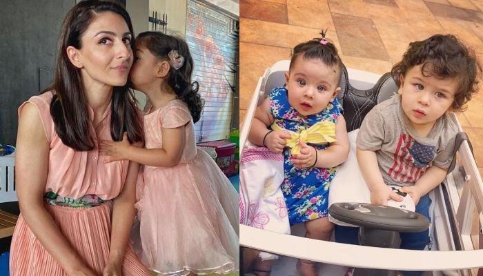 On August 3, 2020, Bollywood actress, Soha Ali Khan took to her Instagram handle and posted a cute picture of her daughter, Inaaya Naumi Kemmu with her cousin, Taimur Ali Khan. In the photo, we can see little Inaaya copying her cousin, Taimur's posing style, and it's hard to take our eyes off from that beautiful smile on the face of little Inaaya. However, the little prince, Taimur Ali Khan is getting a lot of love from the netizens all over the internet as he copies his mother and actress, Kareena Kapoor Khan's trademark pout in style. Along with the picture, Soha wrote a caption, and it can be read as "On the ball and in my corner. #happyrakshabandhan #timandinni." Well, after some hours, Taimur's doting mother and Bollywood actress, Kareena Kapoor Khan reposted this same picture on her Instagram handle along with a cute caption and it can be read as "Inni wondering how Tim got that pout #Repost @sakpataudi." Also, Soha Ali Khan has wished her brother, Saif Ali Khan with a beautiful throwback picture from their childhood. Along with the photo, Soha wrote an emotional caption and it can be read as "There’s no denying you are the coolest brother I know. And there s no denying I don’t know the first thing about being cool! #happyrakshabandhan bhai #throwback." Take a look. (Don't Miss: Kareena Kapoor Khan Shares A Throwback Picture From A Photoshoot When Taimur Was In Her Tummy)