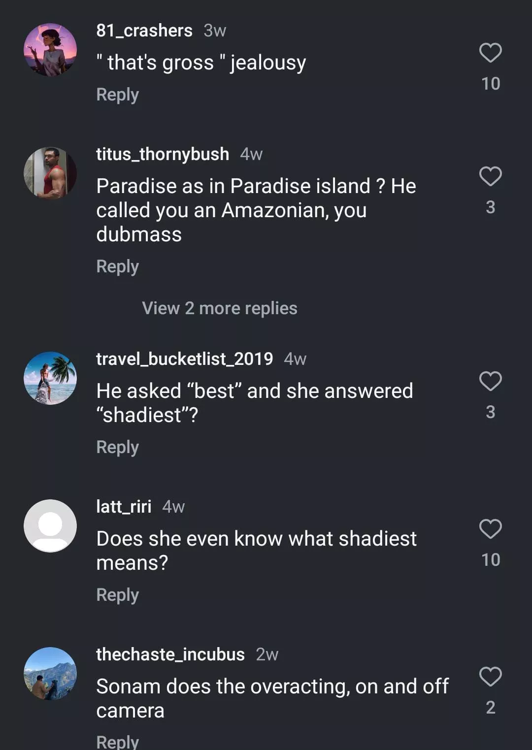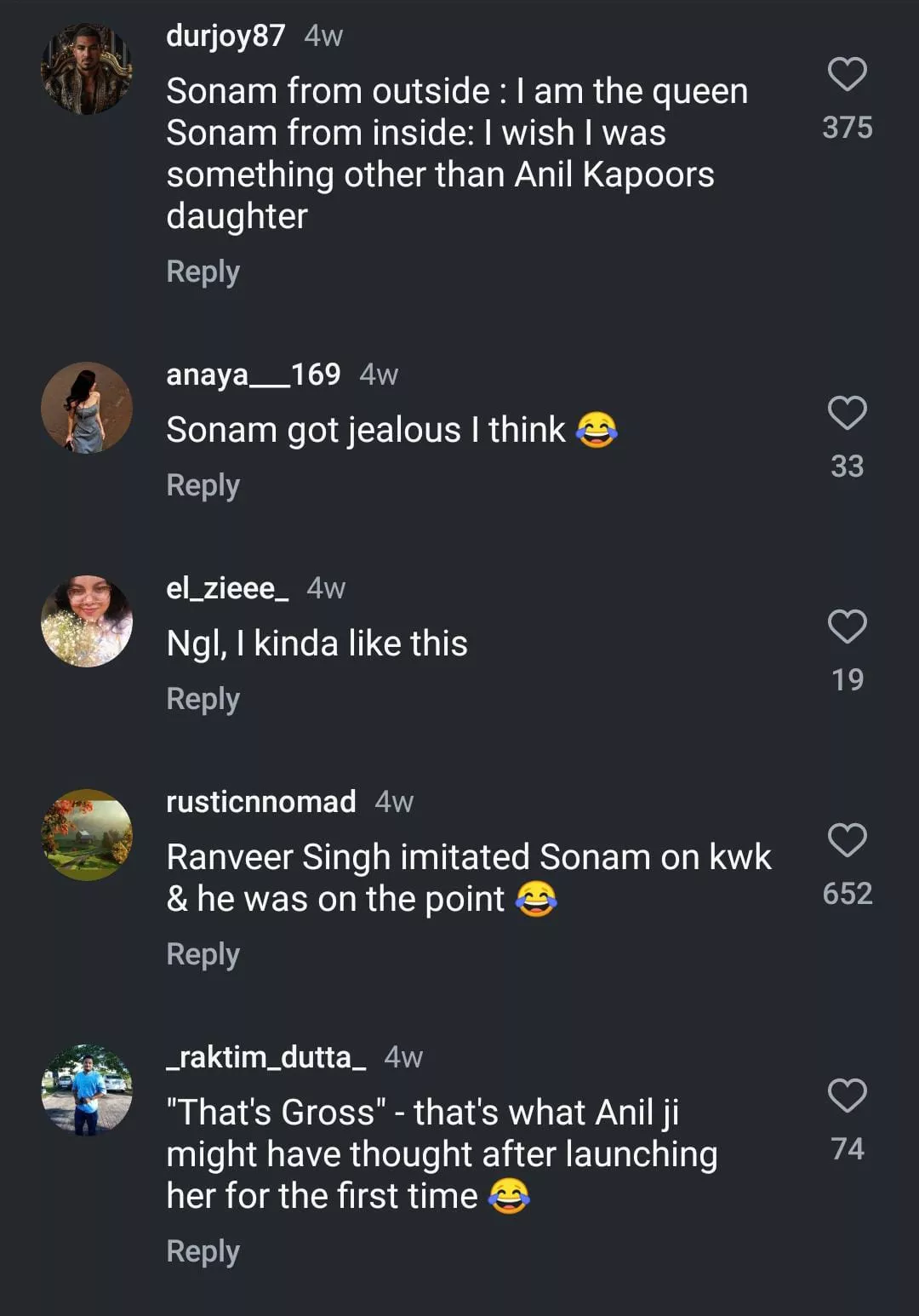 What do you think about Sonam's reaction?