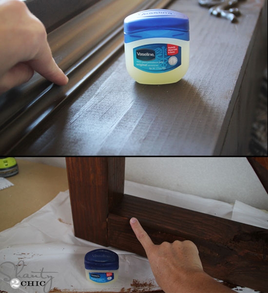 Save your intricate piece of wood work with Vaseline. Just coat petroleum jelly on the places where you do not want the paint to sneak in. You can later use a paper towel to clean it.