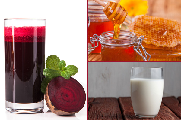 Method: Take a cotton ball and soak it in beetroot juice mixed with honey and milk. Close your eyes to give a nice coating all over, including the eyelids. Leave for 10 minutes and wash off with cold water.