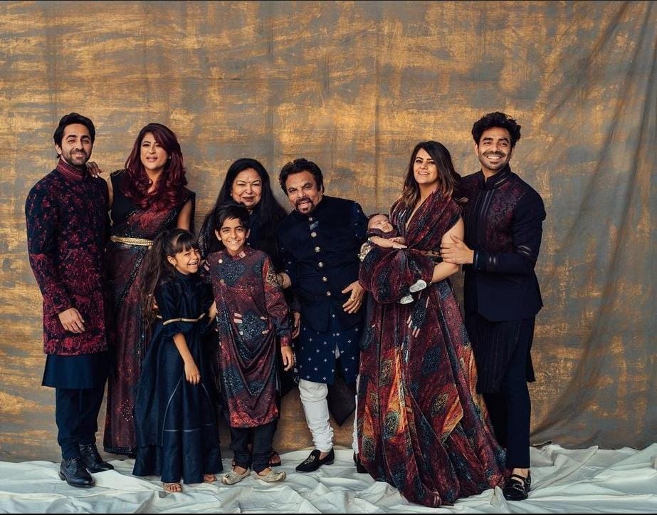 The Khurana family share a beautiful bond with each other. While Aparshakti and Aakriti spend time with their nephew and niece, Virajveer and Varushka, on the other hand, Ayushmann and Tahira love to spend time with the newest member of the family, Arzoie. On Diwali 2021, we had seen the Khurana family twinning in the ensembles by designer duo, Shantanu and Nikhil, and the baby girl, Arzoie had made heads turn. Sharing the picture, Aparshakti had written a caption that could be read as, "A very Happy Diwali to you and yours from me and mine."