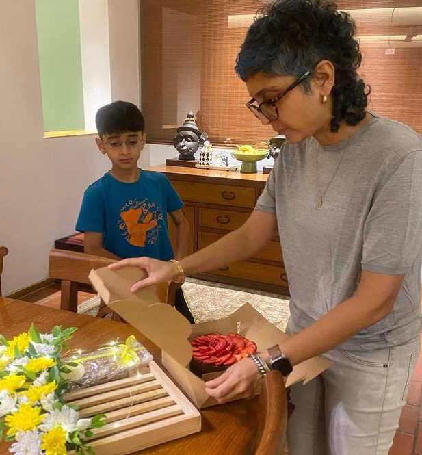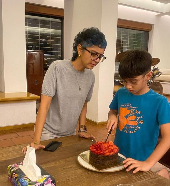 Aamir and Kiran's son, Azad turned 10 a few days back. To celebrate the same, the 3 Idiots actor reunited with his ex-wife, Kiran Rao. On December 1, 2021, author and columnist, Shobha De took to her IG handle and posted pictures from Azad's birthday celebrations. In the pictures, Aamir was seen enjoying the moment with Azad, while mom, Kiran helped him to cut the cake. Aamir's elder son, Junaid Khan from his first wife, Reena Datta was also present for the celebration. Shobha captioned the pictures as: