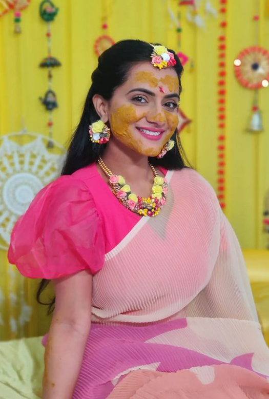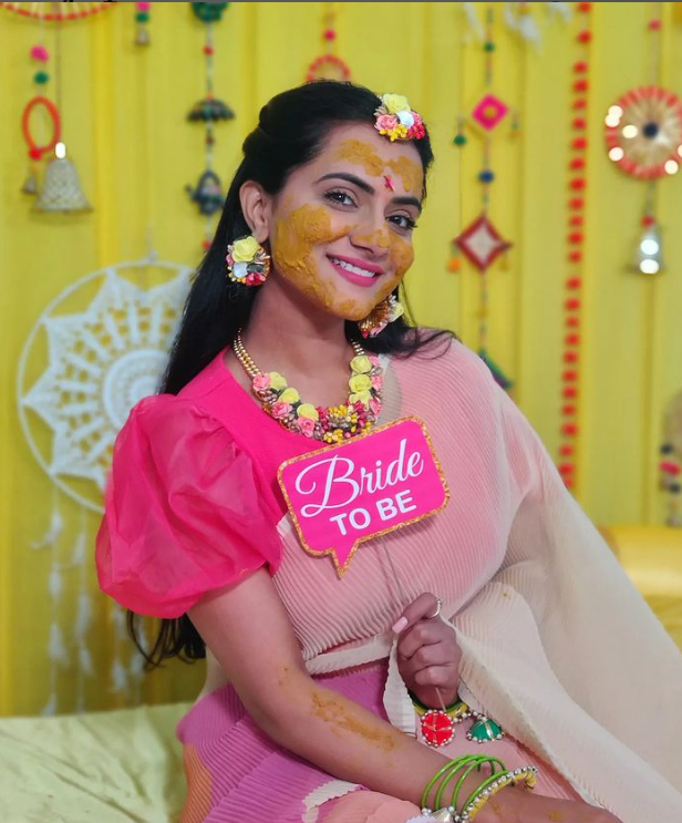 Aastha's pre-wedding ceremony had kickstarted with haldi rasam on October 23, 2022. The gorgeous actress had posted glimpses from the same, in which she had looked stunning in a pink and white coloured saree, which she had paired with a pink balloon-sleeved blouse and floral jewellery. She had captioned the pictures as: