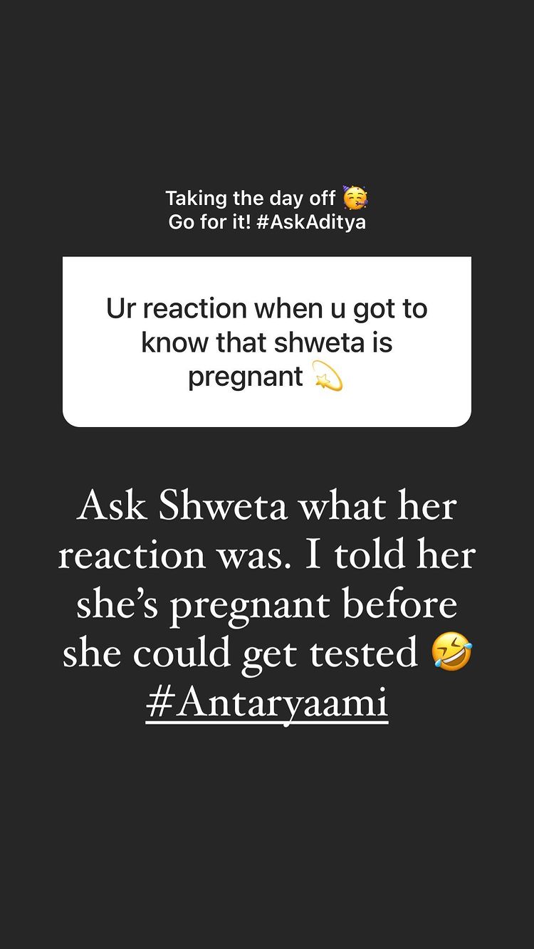 On March 9, 2022, Aditya had hosted an 'Ask Me Anything' session on Instagram. A fan had taken the opportunity and had asked him what was his reaction after getting to know about his wife's pregnancy. To this, the singer had revealed that he was the one, who had told Shweta she was pregnant even before she had known.