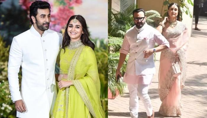 A few moments back, Kareena Kapoor Khan and her husband, Saif Ali Khan were spotted leaving for their favourites, Ranbir Kapoor and Alia Bhatt's wedding. The couple looked absolutely perfect in their respective outfits. On one side, Saif looked dapper in a pink kurta, white pants, and a well-tailored sharp-looking white waistcoat. On the other hand, Kareena dazzled in a classic zari embroidered timeless organza saree titled, Khaab, from none other than the ace fashion designer, Manish Malhotra. The actress looked simply out of this world, as her maang tikka also took our breath away and it's impossible not to compliment her pearl-beaded necklace.