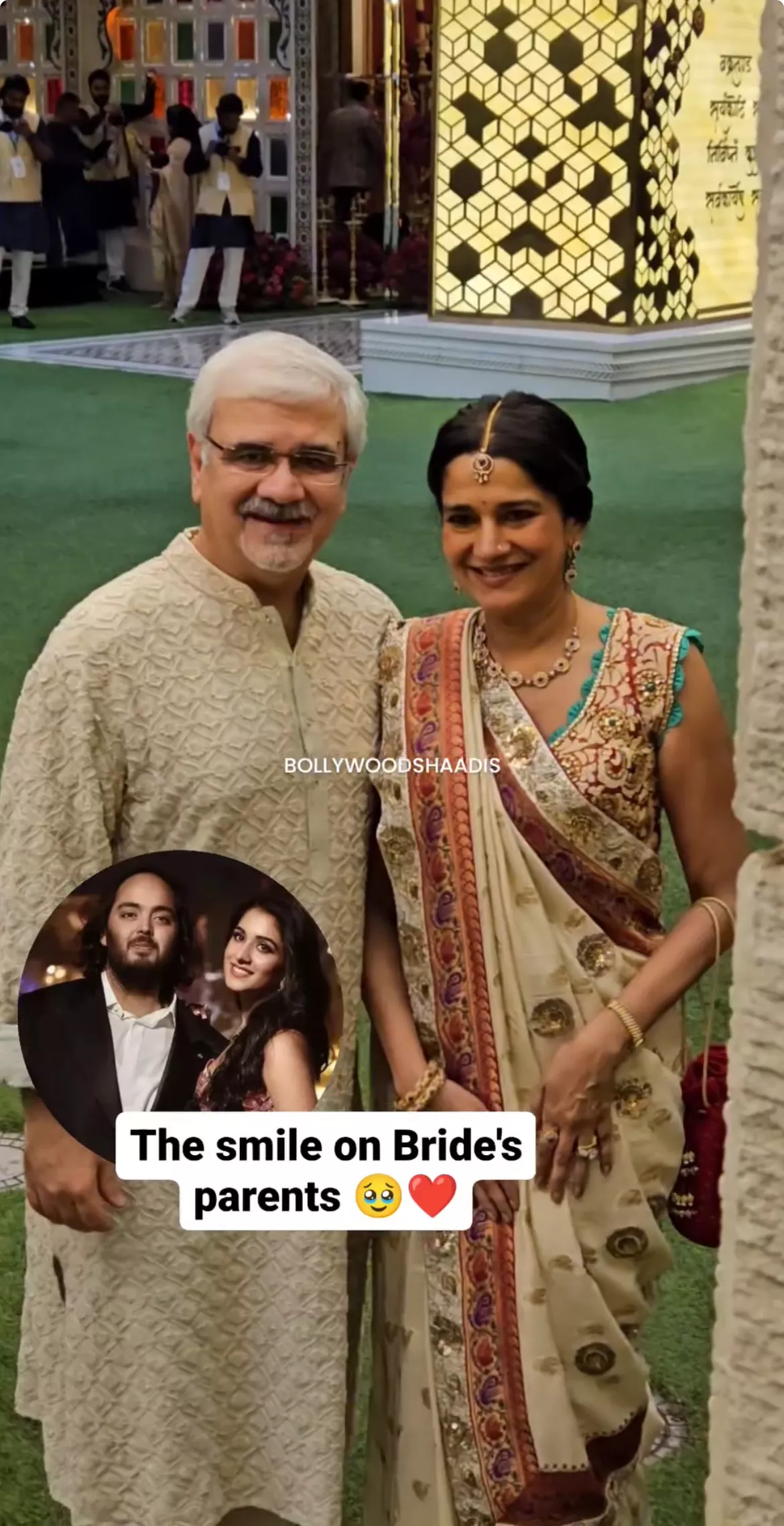 Next, the paps spotted Radhika Merchant's parents, Viren Merchant and Shaila Merchant, arriving at the event and holding each other's hands. The duo was decked up in respective traditional ensembles. Viren donned a cream-hued self-embellished kurta and matching pyjama for the event. On the other hand, Shaila looked gorgeous in a cream-hued saree teamed with an embellished blouse and matching jewellery.