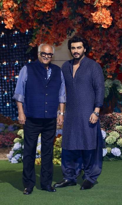 Filmmaker, Vidhu Vinod Chopra and his wife, Anupama Chopra too join the Ambani family in their happiness. The film critic, Anupama looked stunning in ethnic attire. She donned a purple-hued embroidered kurta and paired it with a green-coloured pleated skirt and a dupatta. Her husband, Vidhu Vinod Chopra complemented her in a blue-hued kurta, which he teamed with a black Nehru jacket and white pyjama. The popular director, Raj Kumar Hirani was also present at the party and he looked amazing in a navy blue-hued kurta-pyjama set paired with a brown jacket.