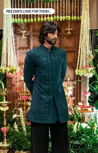 We also got hold of Meezan Jafri's look from the mehendi ceremony of Anant and Radhika. The handsome hunk donned a green-toned chikankari kurta, paired with black flared pants. He, in the photo, can be seen posing against the floral decor. We also stumbled upon an inside glimpse, wherein the to-be-dulhania's friends can be seen showcasing their minimal mehendi-clad hands, and it's all things gorgeous and sophisticated.