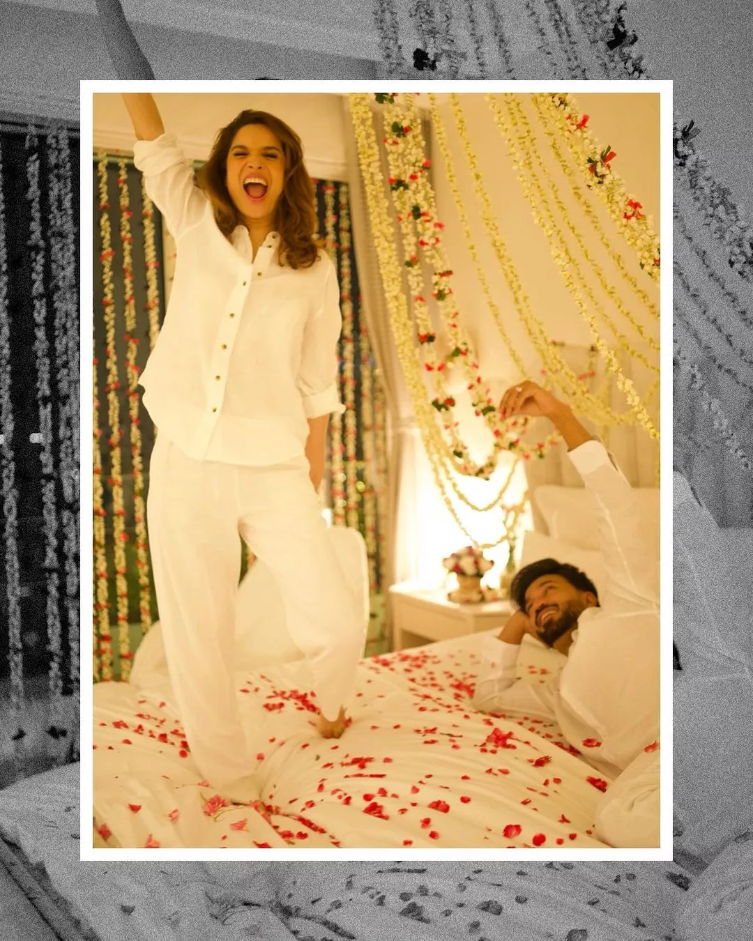 Taking to her IG handle, Ankita Lokhande shared lovely glimpses from the late-night celebration of her and her husband, Vicky Jain's sixth love anniversary. In the pictures, the duo was seen twinning in white ensembles while posing for the lens. Moreover, we can spot their bed beautifully decorated with mogras and red rose petals. In some other glimpses, we spotted a scrumptious cake, specially brought for the lovebirds along with some picture frames.