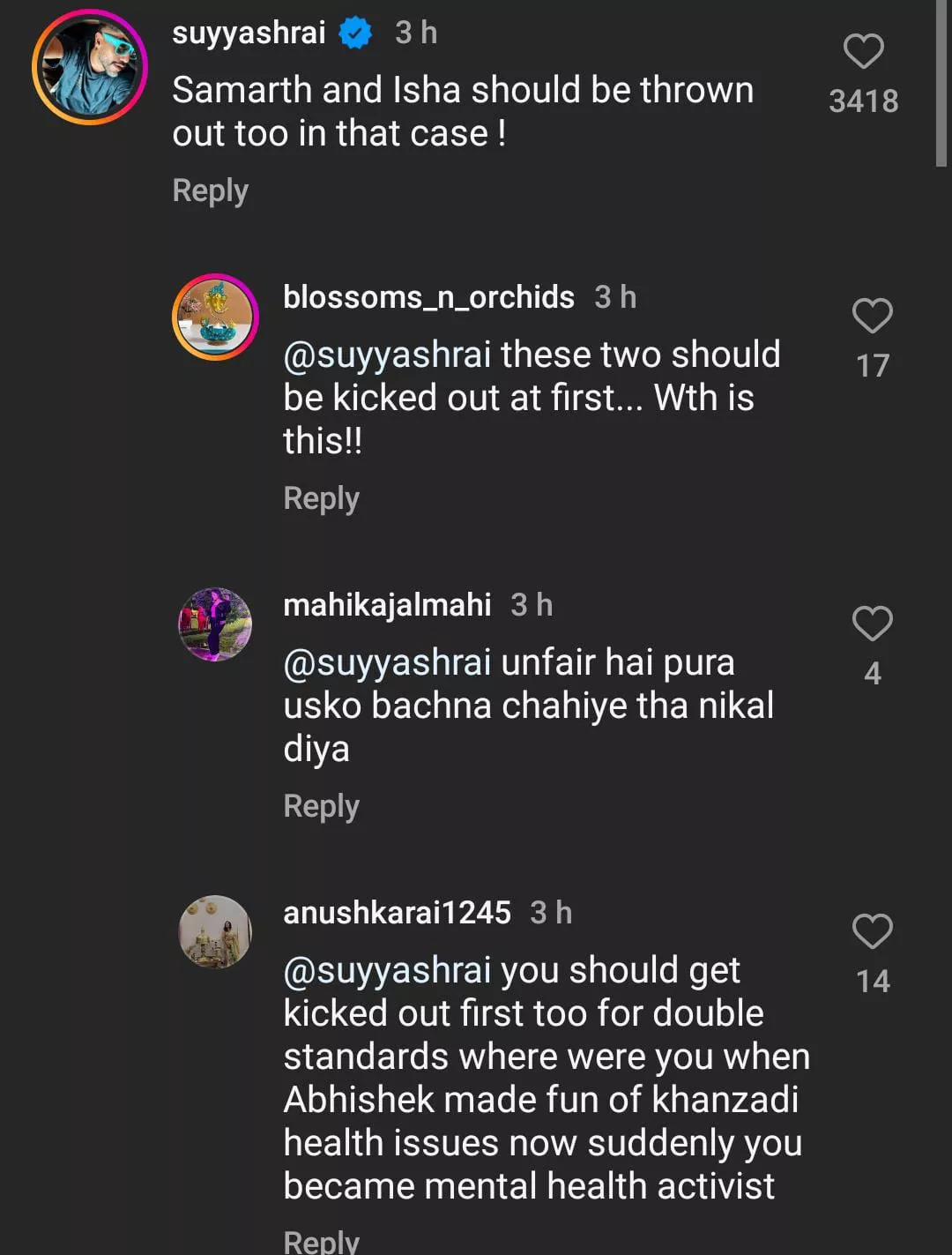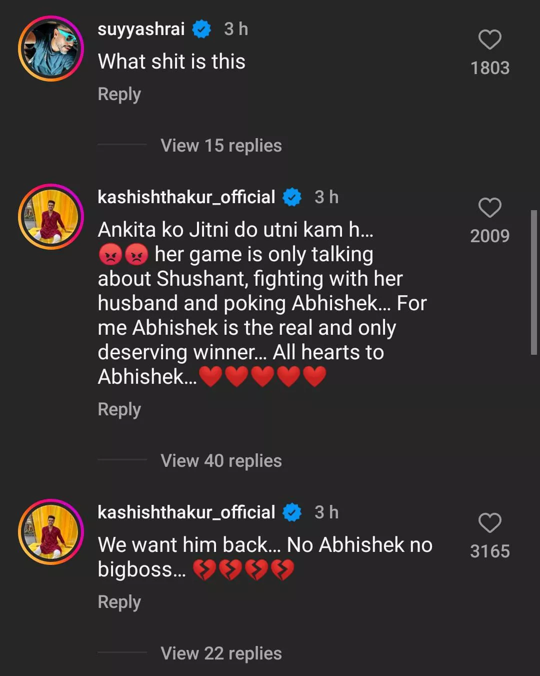As soon as the video was posted, netizens rushed to the comment section and filled it with their opinions. While some users slammed Ankita, others claimed that they want Abhishek back in the game. Meanwhile, some other users called such a decision 'ridiculous'. On the other hand, it has been speculated that Abhishek can return to the show by Salman Khan during the Weekend Ka Bhar episode. Check out netizens' comments below: