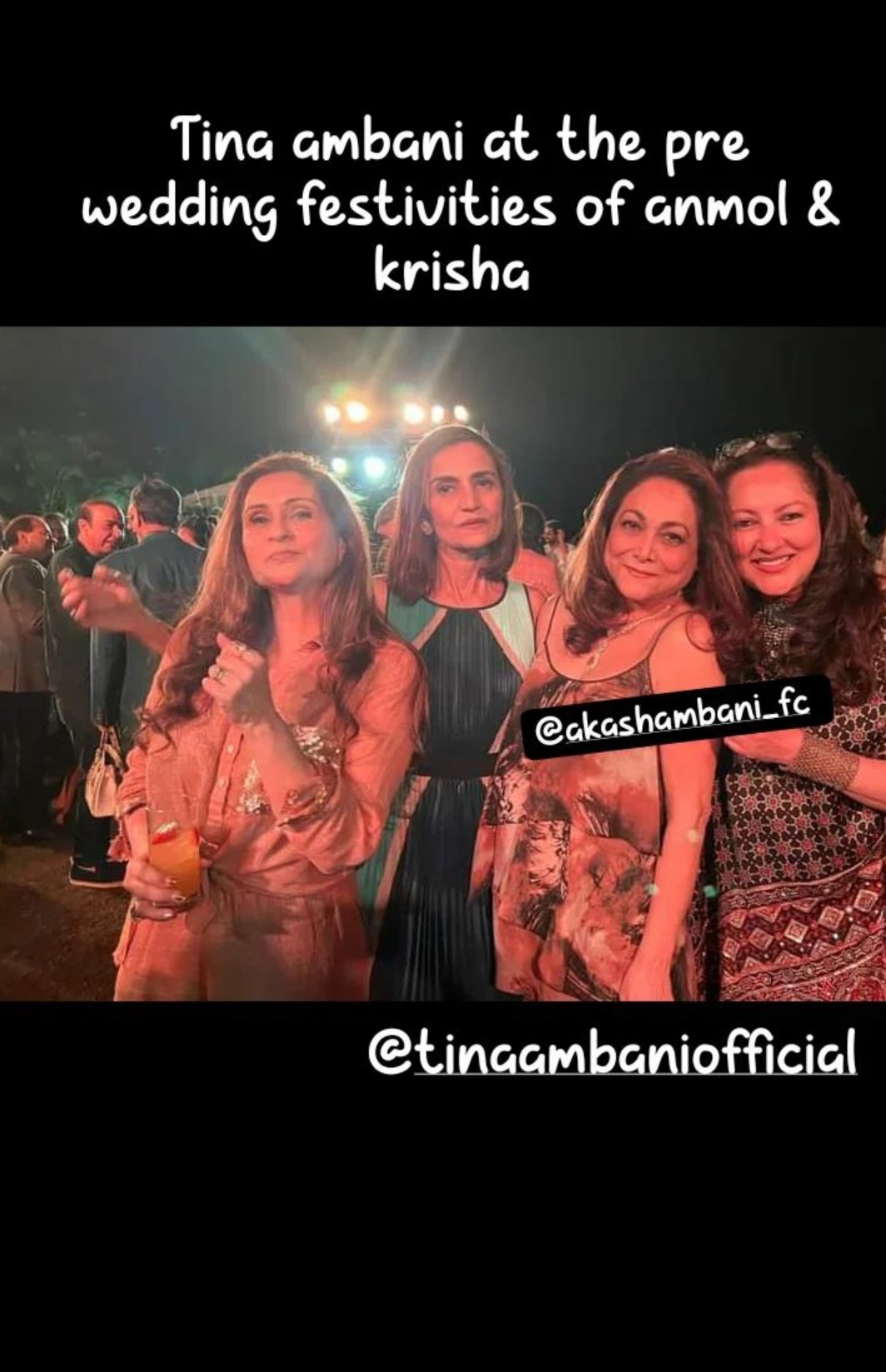 On February 17, 2022, we had stumbled upon an unseen picture from Jai Anmol Ambani and his ladylove, Krisha Shah's sundowner party. In the picture, we could see to-be-groom, Anmol's mother, Tina partying with her girl gang. The doting mother had looked glamourous as she had donned a stunning printed dress and had kept her tresses open.