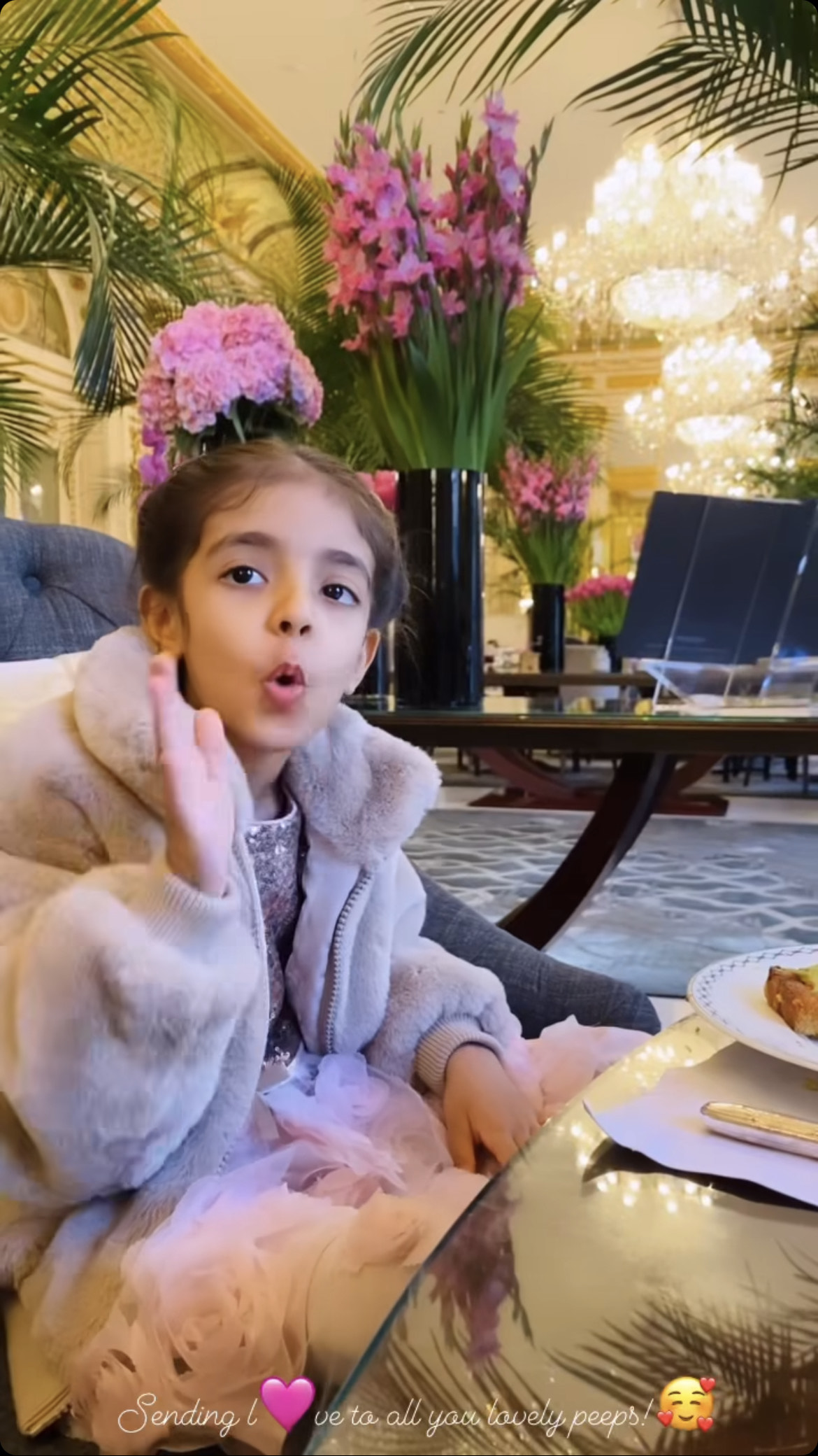 On October 28, 2023, Asin Thottumkal took to her IG stories and gave her fans a sneak peek into her daughter, Arin's post-birthday celebration. In the pictures, the baby girl looked adorable in a pink-hued frock with a glittery bodice and 3-D flower detailing. She styled her outfit with a grey-hued fur coat and tied her hair in a ponytail. Arin was seen busy clicking pictures as she enjoyed breakfast with her parents, Asin and Rahul. In one of the pictures, Arin gave a sweet peck to her dad, and atop the photo, Asin penned: