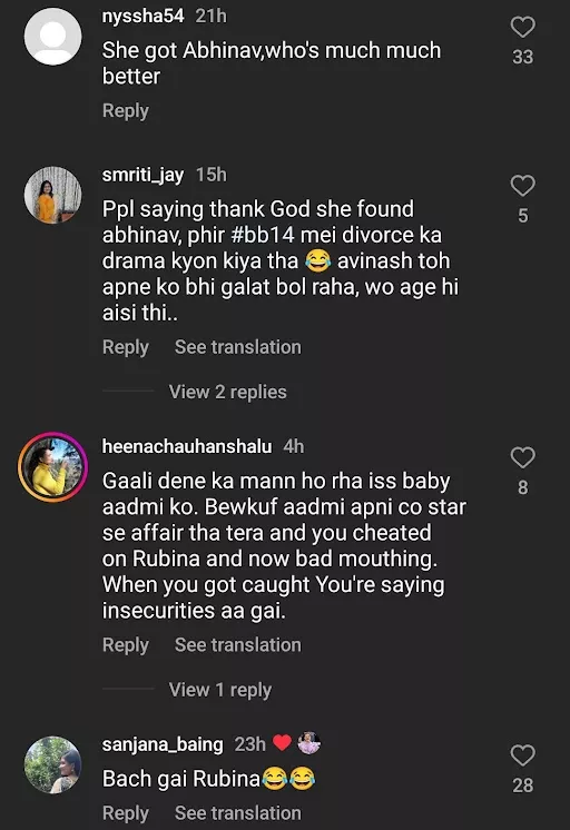 One of many fanpages of Rubina Dilaik circulated the clips from the interviews. Netizens soon took to the comment section, expressing their disapproval of Avinash’s allegations against Rubina Dilaik and hailing her husband, Abhinav Shukla, for being by her side throughout. While some tried to defend Avinash, stating that he was sharing his point of view, others bashed him for always blaming others.