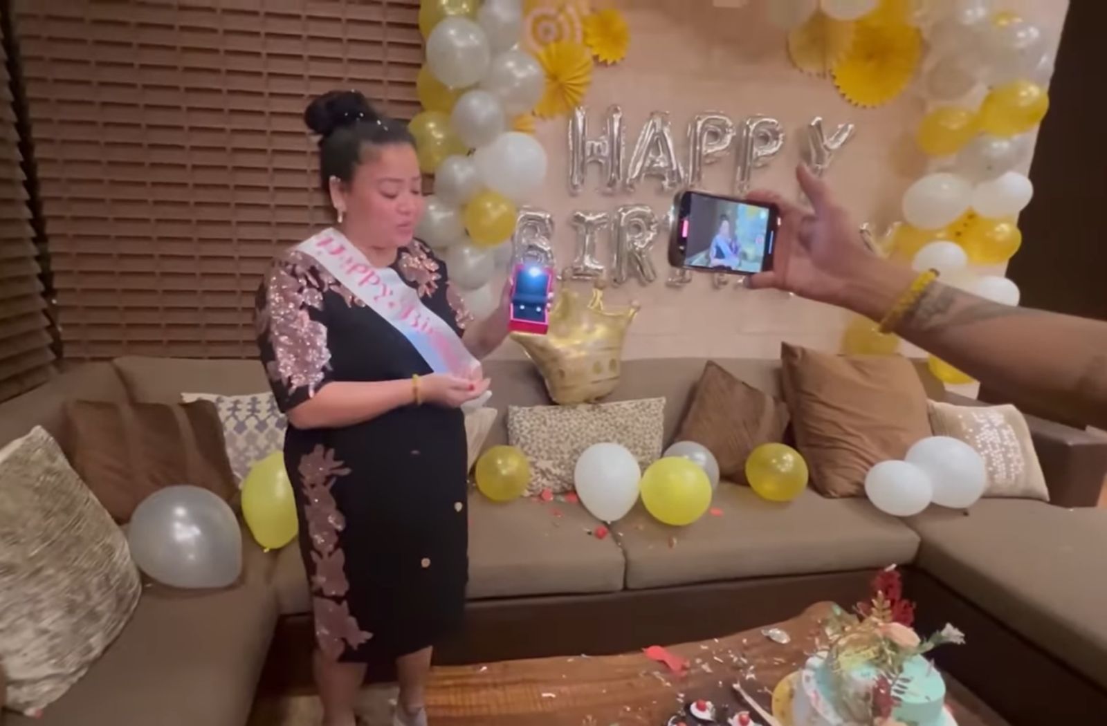 In the next segment of the video, Bharti can be seen dressed in a black outfit. She shared that she wanted to cut a cake on her birthday but the heavy rain spoiled her plans. Soon, Haarsh came to his wife, Bharti and took her downstairs for her surprise birthday bash. Bharti was stunned to see the living area adorned with balloons and 'Happy Birthday' decoration on the wall. We can also see four cakes lying on the coffee table, and Bharti cut them happily. However, her baby boy, Laksh was missing from the celebrations as he was sleeping.