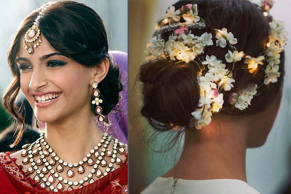 Big, polished and poufy buns aside, messy buns are also a great option. They can be styled differently, like a side bun for mehendi or as a decorated bun for your reception party. Seen on designer Reem Acra’s runways with glowing floral adornments, this style has truly wowed us! Indian designer, SS Surya, also showcased an edgier version of the messy bun at the Lakme Fashion Week Summer Resort 2015 runway.