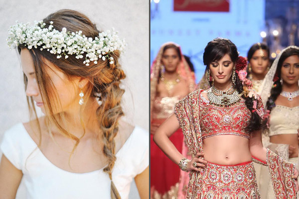Twisted ropes, classic braids to messy styles, all have been a huge success on the 2015 runways. An ideal style for both Indian and international desi brides, a braid can complement both the lehenga and the gown. Messy braids would specifically look good on the occasions of sagan or sangeet, with Indo-western outfits.