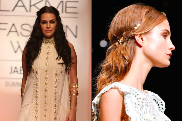 Half-up half-down hairstyles have been a staple for a lot of international brides. The trend has also started gaining popularity amongst the Indian brides, and we are certainly not complaining. It is feminine, romantic, pretty and we are in love with it! Being an ideal way to flaunt the length of your hair, whilst supporting a beautiful hairdo, this style has been another prominent feature on the ramps this year. Bollywood actress, Neha Dhupia, sashayed down at designer Sonu Dharnidharka's runway at the Lakme Fashion Week Summer Resort 2015, sporting such a hairdo. Even international designer Valentino showed off this style on his runway.