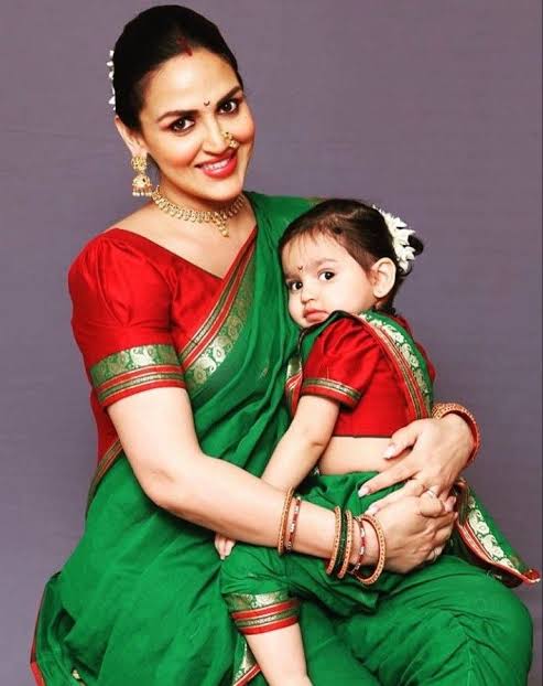 It was in 2019, when Esha was pregnant with Miraya but the doting mother had twinned with her elder daughter, Radhya at her first performance in playschool. Though Esha is often seen performing with her mother, Hema Malini on the stage, this was her first performance with Radhya at her school's annual function. Esha had adorned a green saree with a red and golden border and paired it up with a red blouse. She had dressed Radhya in the same manner and the mommy-daughter duo looked adorable in matching outfits.