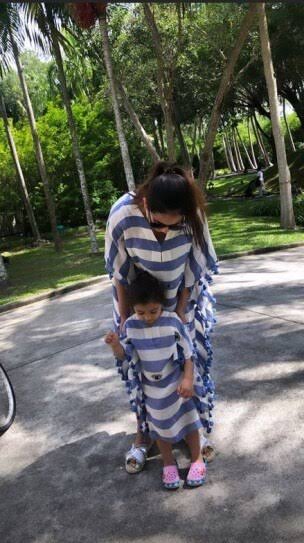 Shahid Kapoor and Mira Rajput Kapoor had taken to their social media accounts to share glimpses from from their Phuket vacation. And the pictures were nothing less than family goals. While the family had spent a good time there, it was Mira and Misha's outfit, that had caught our attention. Mira had shared a photo of her twinning with Misha. Both of them had worn a dress with blue and white stripes.