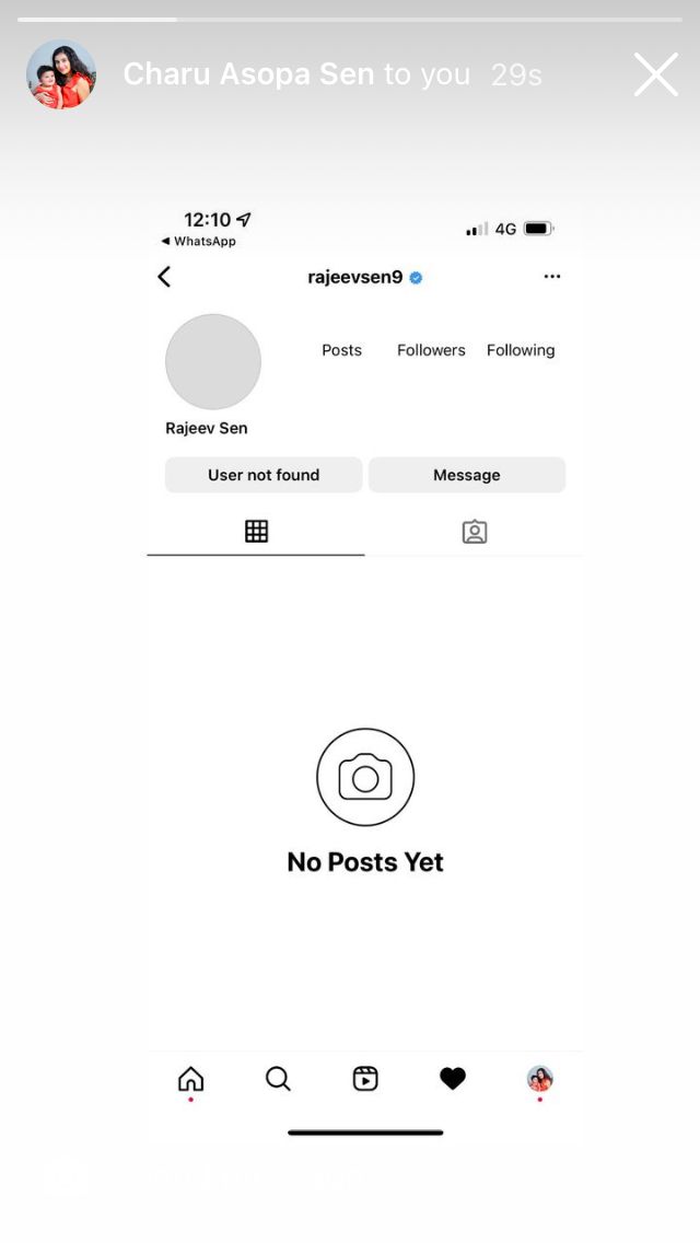 In the same conversation, Charu also gave proof that Rajeev had blocked her in reality and mentioned, "I am still blocked, I am not lying." She shared a screengrab of Rajeev's profile which was entirely blank. Check it out: