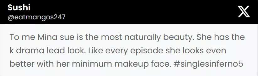 It was on January 28, 2026, when a Korean outlet named Daily Fashion News showcased a small clip that featured the female cast of Single's Inferno Season 5. The contestants were Choi Mina Sue, Kim Min-ji, Lee Joo-young, Lee Ha-eun, Park Hee-sun, Ham Ye-jin along with Kim Go Eun. The clip went viral and conversations related to the appearance of Choi Mina were being discussed. A netizen posting the video on X called Choi Mina the least attractive and penned: