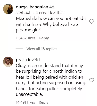 Further, Janhvi asked the Curly Tales founder to have food with her hand. To which, the latter said she doesn't know how to have idli with hand. Meanwhile, after trying the idli-chicken curry combination suggested by the actress, Kamiya said even though the food tasted good, it was still a 'weird combination'.