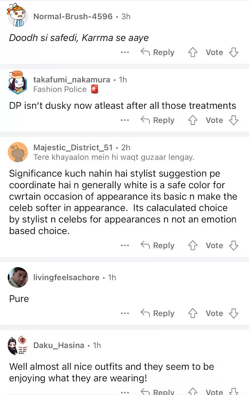 Soon after the post was shared on credit, many netizens started reacting to it. While some claimed that it was just a coincidence, others mentioned that the duo wore white to mark new beginnings. Meanwhile, some social media users also stated that Deepika and Ranveer were dressed in white to ward off negative energy.