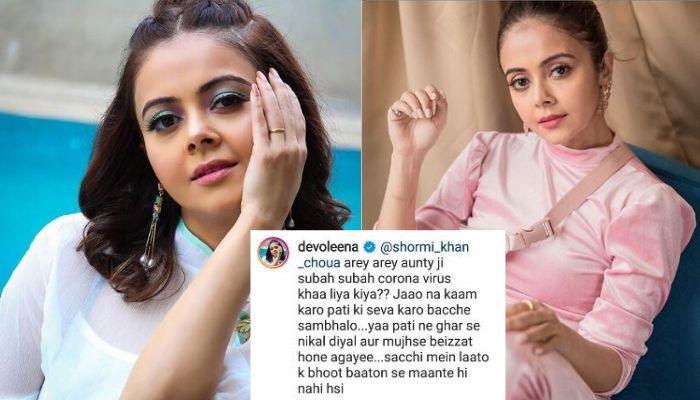 Amongst the savage replies by Devoleena was a reply that had made the netizens more furious and they started trolling Devoleena over that reply. A user had tried trolling Devoleena by sharing a nasty comment on one of her pictures that could be read as “Footage abvibi leti hain SidNaaz se. Gali ki kutte jeisi celeb hain tu. Tujhko jo shadi karega uska halat kharap hoga. Battu kahiki” The comment itself was derogatory, but Devoleena’s reply had added more to the already ignited fire. To regain herself, Devoleena ended up making fun of the on-going coronavirus pandemic and disrespecting the housewives. Her comment can be read as “@shormi_khan_choua arey arey aunty ji subah subah corona virus khaa liya kiya?? Jaao na kaam karo pati ki seva karo bacche sambhalo...yaa pati ne ghar se nikal diyal aur mujhse beizzat hone agayee...sacchi mein laato k bhoot baaton se maante hi nahi hsi.” Take a look.