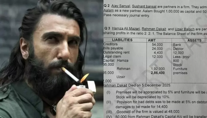 The craze of Dhurandhar went beyond screens now and has now taken over classrooms. Yes, an accounts exam paper is doing rounds in which questions feature names of the characters from Dhurandhar. The question paper features Ranveer Singh’s ‘Hamza’, Akshaye Khanna’s ‘Rehman’, R Madhavan’s ‘Ajay Sanyal’, proving how the blockbuster film penetrated the pop culture.