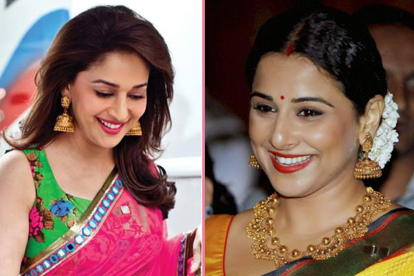 Inspired by South Indian jewellery, chandbaali jhumkas have a half-moon shape with little domes hanging from it. They look amazing with traditional attires.