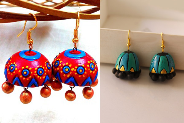 These jhumkas are great for all those who are allergic to metal or gold earrings. Why? Well, because terracotta jhumkas are handmade from natural earthen-baked clay, hence making it skin friendly. And, to give a more natural look to the jhumkas, the designs of these earrings are inspired by natural elements. Terracotta jhumkas come in vibrant colours, which you will love for sure.
