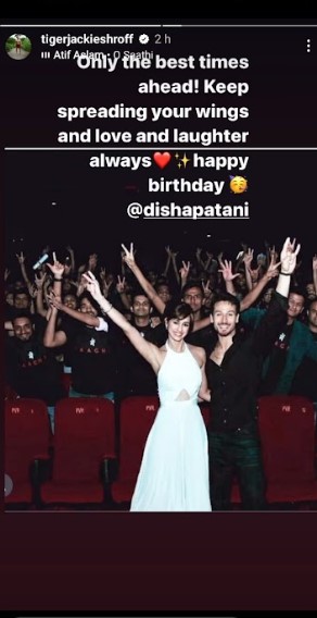 To wish his rumoured love, Disha Patani, Tiger Shroff took to his IG stories and penned a lovely birthday wish for her. He posted a cute picture with her from one of their promotions, in which the duo looked adorable, Tiger penned: